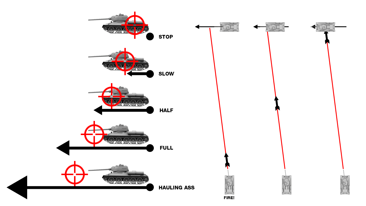 En la imagen se muestra donde apuntar dependiendo la velocidad en la que se encuentra el objetivo, desde una distancia media. No es gran cosa, pero mas o menos calculen donde dispararle al enemigo.