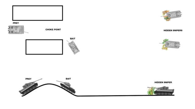 Si estan mas experimentados, y la situacion se los permite, pueden esperar a que el enemigo dispare contra el Tiger y ustedes salen para flankearlos. Pero teniendo cuidado de los demas enemigos.
